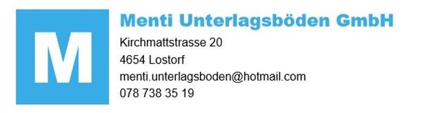 Hier finden Sie alle Kontaktdaten, um mit der Menti Unterlagsboden GmbH in Kontakt zu treten. Gerne besprechen wir auch Ihr Projekt rund um Hartbeton, Estrich, Überzug, Dämmung und Isolationen. Profitieren Sie von unserer Erfahrung und Top-Qualität bei der Verlegung von Böden.